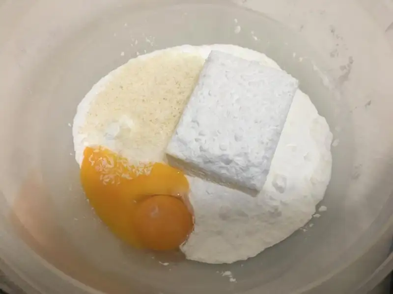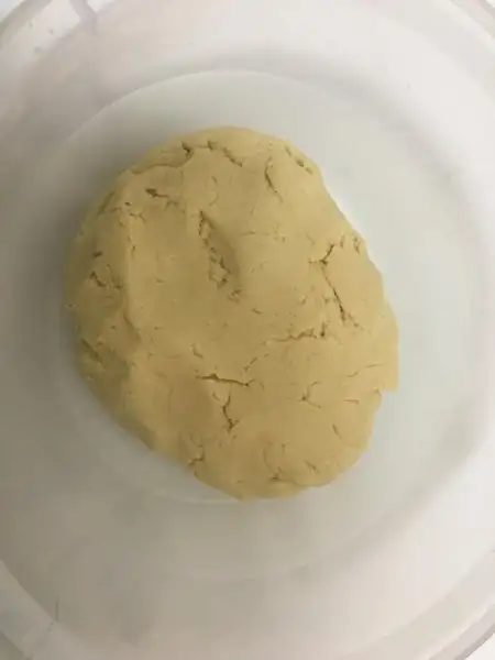 Oda ısısındaki tereyağını, vanilya, pudra şekeri, yumurta ve kabartma tozunu yoğurma kabına alın. Sonra içine dört kaşık Hindistan cevizi ve un ilave ederek yoğurun.