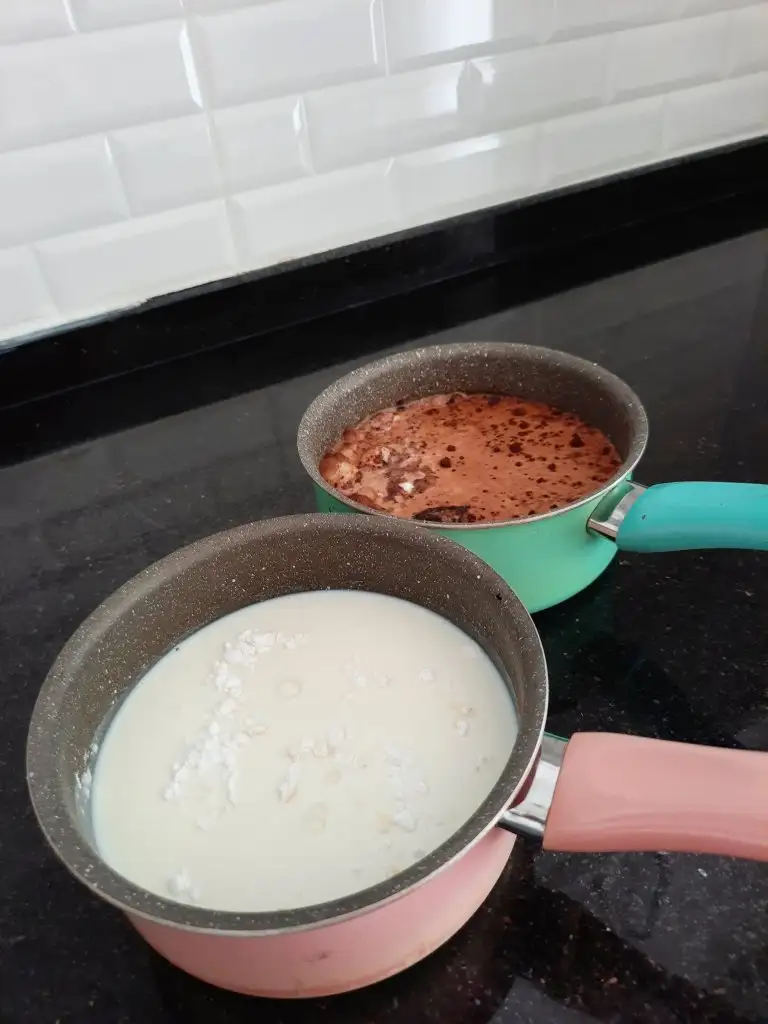 Muhallebi malzemelerini vanilya hariç ayrı tencereye koyup kaynayana kadar karıştıralım.
