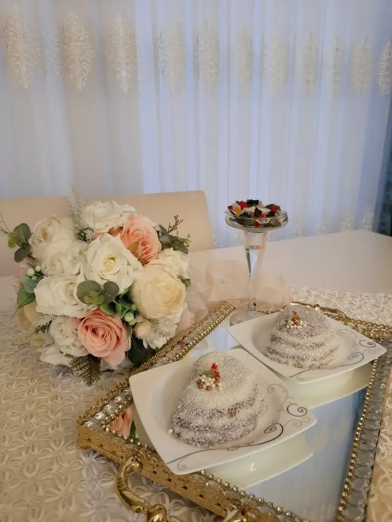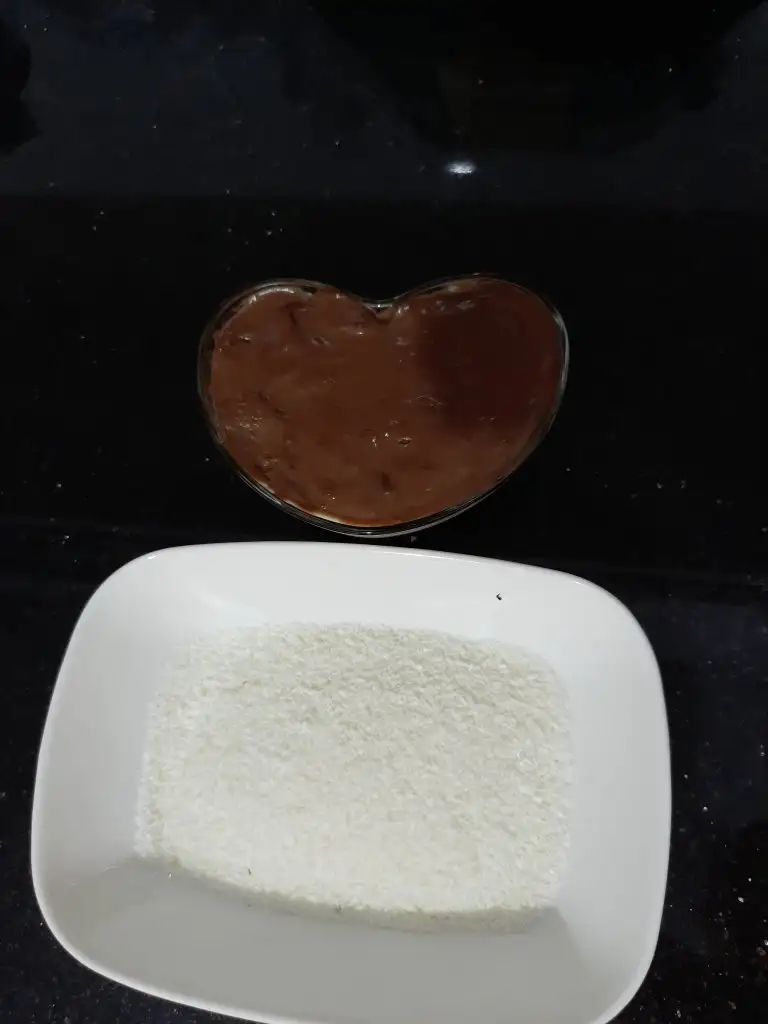 Doldurdugumuz kaplari once dondurucuda 5 dakika bekletip sonrasinda buzdolabina kaldirip 2 saat dinlendirelim. Dinlenen muhallebimizi kabindan ayırıp hindistan cevizine bulayalim ve üzerini zevkimize gore susleyelim.