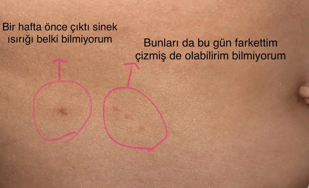 karnımda böyle şeyler farkettim koyu renk olan bir hafta önce çıktı sinek ısırığı gibiydi şu an böyle. diğerlerini de bugün fark ettim. 5 hafta önce korunmasız ilişki yaşadım.sizce HIV lekesi böyle olabilir mi kuruntu mu yapıyorum yoksa? ateş sancı ağrı gibi belirtiler hiç olmadı.