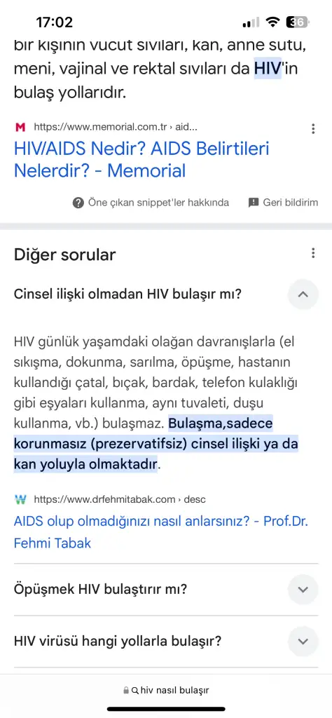 Eşim ilk anti hiv negatif çıktı özelde ikinci anti hiv negatif çıktı devlette mecburi 45 gün sonrası negatif çıktı altı ay sonra kendimiz merak için gittik araştırma hastanesine durumu anlattık anti hiv negatif çıktı doğrulama gerek görülmedi istesek de eşim negatif denildi ben de tanı aldıktan bir ay sonra negatife döndüm yani antikor pozitif çıkıyor doğrulamaya gidiyor rna taramaya saptanamdı geliyor çok şükür ve ve günlük bir tabletimi kullandıkça böyle olacakmış bazen unutup çıkıyorum evden ayda 2 3 defa unuttuğum oluyor yine sapatamıyor bu arada bütün derneklerle iletişim halindeyim bir sürü de hiç pozitif arkadaş edindim sosyal medyada dr ya sormadıklarımı soruyorum herkes ilk aydan negatife dönmüş durumda ama ben çok geç tanı aldım cd4 lerim 380 di normali 600 üstünde olması gerekiyor kas ağrılarım olurdu çok yorulduğumda başka belirtisi yoktu o da herkeste vardı sırtım ağrırdı sadece mevsim geçişi dönemlerdeEee o 5 senelik arada olmuştur belki.esi istediğini söylesin emin olamayız ki.