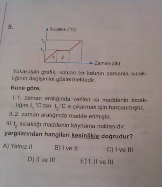 İlk soruda 1 şık yanlış çünkü sıcaklık 0dan t1e çıkmış.