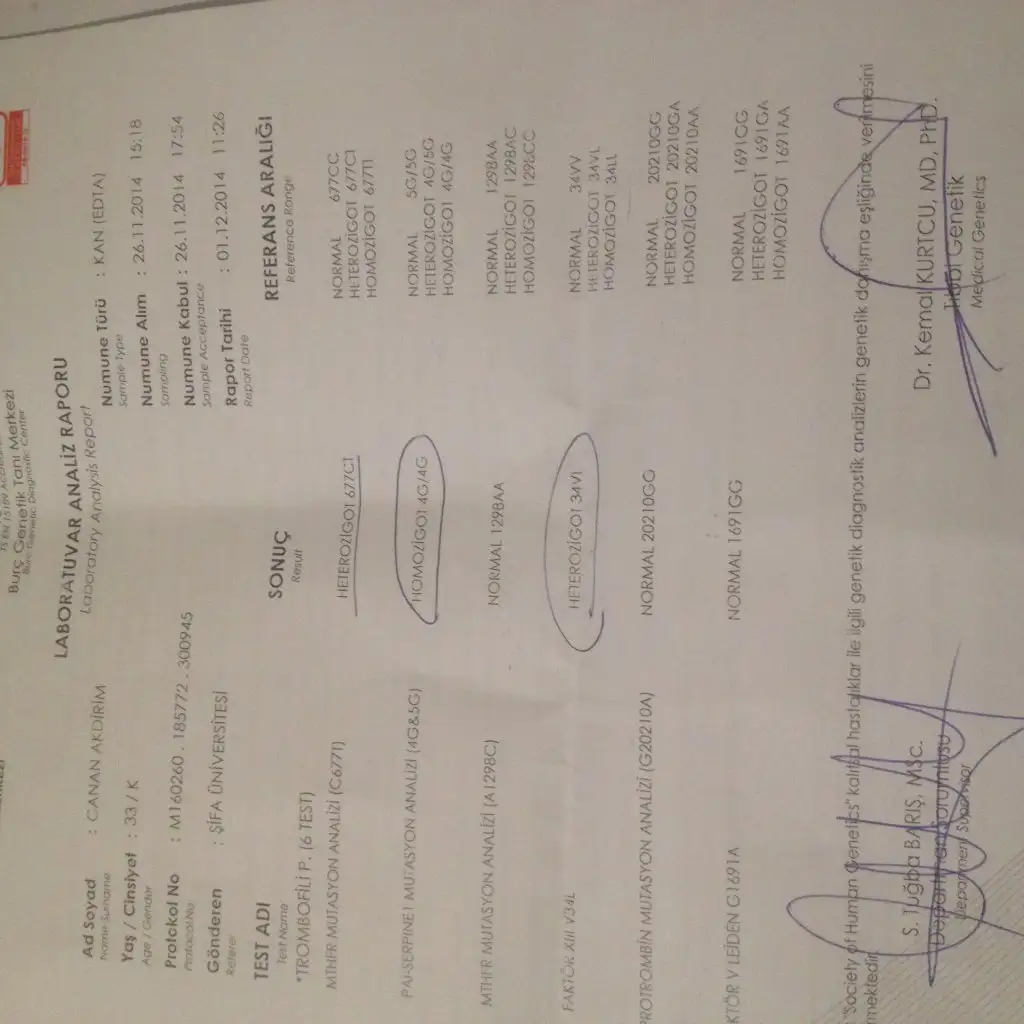 şimdi bende kan pıhtılaşması var herhalde çünkü homozigot çıkmış