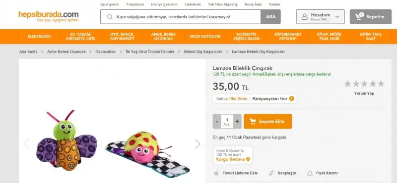 Lamaze çıngıraklı bileklik. Bebeklerin bileklerine takılıyor. Çok dikkatlerini çekiyor. İkisi 12 TL