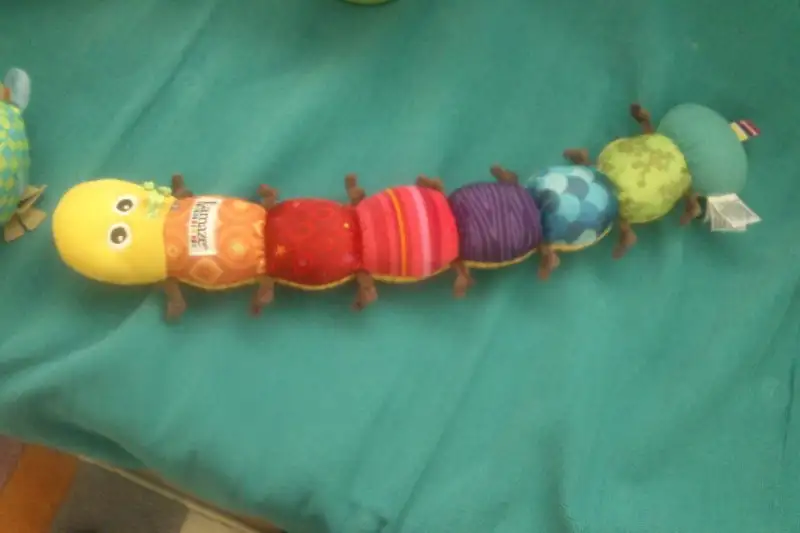 Bebeğiniz tırtılın başına sarıldığı zaman sevimli bir melodi duyulur.