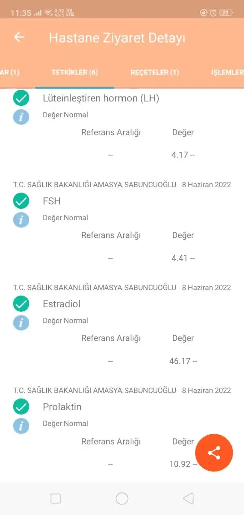 merhaba adetlerim hep düzensiz oluyor çok önceden prolaktin yüksekliğim vardı ama son iki senedir normal değerlerde evleneli 9 ay oldu hiç korunmadık ama gebeli olmadı iki ay ovulasyon testi kullandım yumurtlama görmedim doktora gittigimde sağ yumurtalıkra kist olduğunu söyledi duphaston verdi tekrar gittiğimde artık olmadığı söyledi. başka doktora gittim herşeyin çok iyi olduğunu söyledi hormon sonuçlarım aşağıda ki gibi inofolic ve duphaston verdi ilk ay duphaston kullanım erkenden adet oldum ikinci ay duphaston kullanmadım.