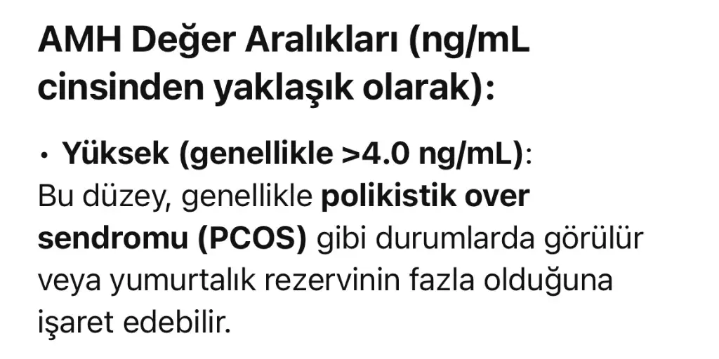 Hayır canım ıh hormonu pco da çok yüksek olur hatta şöyle söylim 10 un üstüne çıkınca şüphe edilir pconun farklı belirtileri vardır kimi ultrasonda görünürken kimi amh ile anlaşılır bence doktorla bir görüş amh 5 yüksek demek normal değer aralığı 1 ile 3,5 4 arasıdır