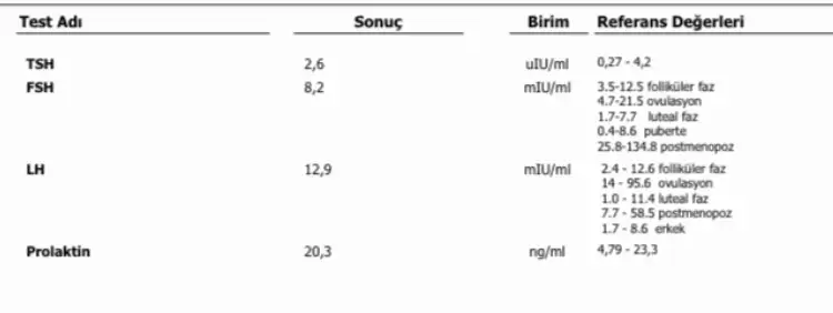 Adetli iken baktırdığın için foliküler faz kısmı senin bakman gereken. Onlar da lh sınırda biraz onun dışında gayet iyi