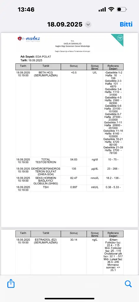 Sonuclarin gayet guzel yani ne alaka he pcosu belki rahimdeki yumurtlardan anlamis olabilir ama degerlein normal ama gebelik yok test yaptim silik cikti demistin ya o yuzden diyorum suanlik hepsi normal gozukuyor yuksek yada dusuk yok bir kac tane sinirda cikmis regl yada regle yakin misin