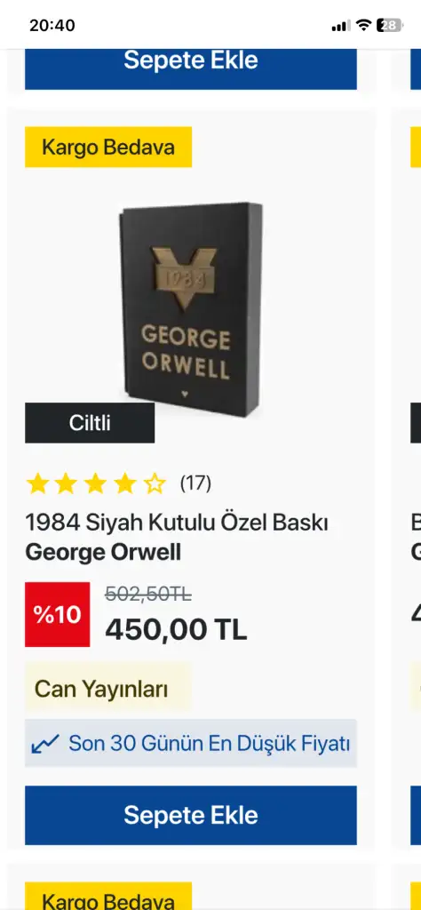 Sitesinde fiyatları uygun D&R ın. Ben sormuştum neden farklı diye. Mağaza kirası ve eleman gideri yok demişlerdiBu D&R mağazada ikinciye %50 indirim ayağına bizi mi kandırıyor nedirKendi sitesinin fiyatları aşağıdakiler