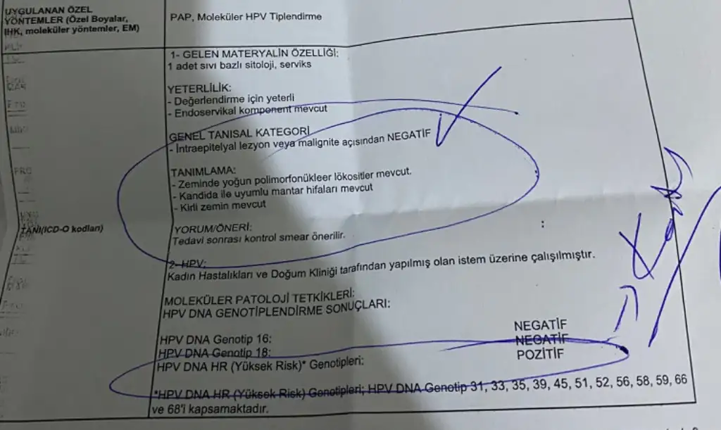merhaba ben de sizinle aynı durumdayım kendi sonuçlarımı koydum. ilk testi geçen sene ekimde yaptırınca hpvyi öğrendim mantar şikayetim daha önce de vardı. aralıklarla fitil kullandım farklı ilaçlar denedim ama kalıcı çözüm olmadı maalesef bazen koku ve akıntı şikayetim çok şiddetli oluyor. korunmalı ilişkiye girdiğimde de lekeli kanamam oluyor bu da hpvden dolayıymış. gelecek ay kolposkopi yaptıracağım lezyondan dolayı. sigarayı bıraktım iyi besleniyorum fakat geçmiyor. yazıcak çok şeyim var aslında ama merak ettiğiniz varsa konuşalım ikimizde de aynı şikayetler var
