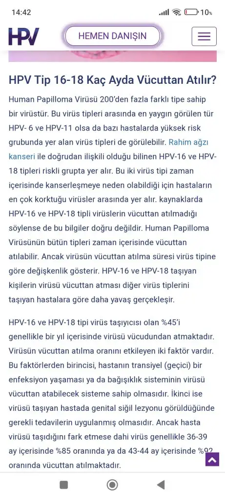 Bu arada hepsinin atilma hizi ayni derken Murat Gultekin bunu yuksek riskliler arasinda diyor. Dusuk risklileri ayiriyor bunu belirtmemisimBirde sizin sorduğunuz doktorlar ve araştırdiklariniz 16-18 tipleri için de geçerli mi acaba? Diğer tipleri daha kolay atılıyor çünkü, en riskli tipler için sordunuz mu? Bu detay çok önemli. Rabbim hepimizin yardımcısı olsun inşallah