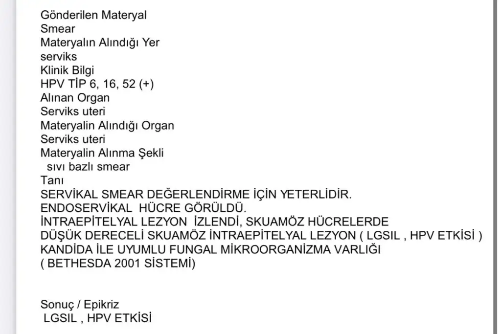 Ben hala bu hastalıkla savaş veriyorum; koskoca 12 yıl oldu ve 12 yıl sonra 2.kez leep oldum. Ben HPV den kadınların erkeklere göre daha fazla acı çektiği için çok üzgünüm.lütfen dikkat et kendine.