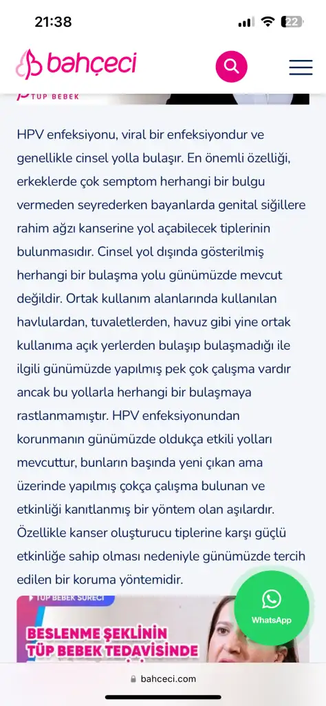 Benim attigim goruntulerde kanitlayan bir calisma olmadigini soyluyor. Bu ne demektir boyle bir bulgunun olmadigi yonundedir. Hpv hakkinda her argumani kabul edeceksek hpvnin vucutta omur boyu kaldigina yonelik olan calismalari da kabul etmemiz gerekiyor. Hpv asisinin kalbe zararli oldugunu soyleyen doktorlari da dinlememiz gerekiyor. Hpv kan yoluyla bulasabilen bir virus diyen bir suru doktor var ama ayni zamanda bulasmaz diyen de bir suru doktor var. Hpv cansiz maddelerden gecer diyen de var geçmeyen de var. Sorun calismalarin bu konuda yetersiz kalmasi. Su an dunyada hiv’den iki kisi kurtuldu ve bu yonde arastirmalar var hivden kurtulus tam olarak var diyebilir miyiz? Hayir. Hpv vajinal yolla anneden bebege, cinsel iliski esnasinda(oral, anal, surtunme gibi durumlar da dahil) hpv ile enfekte bolgeye dokunarak elini yikamadan bir baska kisiye dokunmasiyla ya da giyilmis ic camasirinin giyilmesi gibi seylerle de bulasabilir. Bunlar demek degil ki hpvyi tasiyan insanlar her seyi yapabilir ben de tasiyorum ama elimden geldigince dikkat etmeye çalışıyorum. Konu bu. Aslinda cogu doktor da kanitlanmadigi icin hayir bulasmaz ya da belli degil diyor.