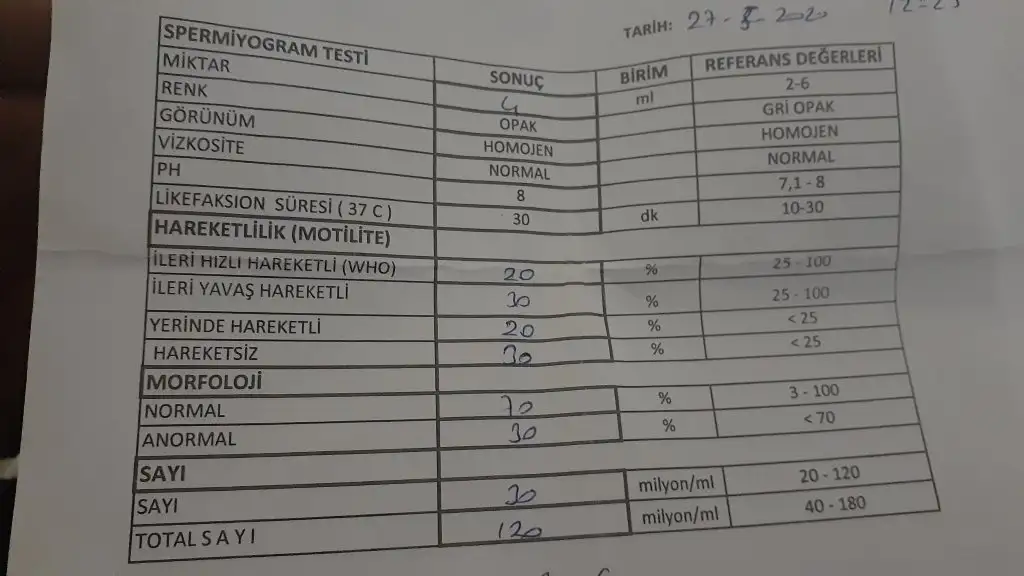 Eşimin test sayısı böyle çıkmıştı 3 doktor baktı 3 u de herşey normal dedi