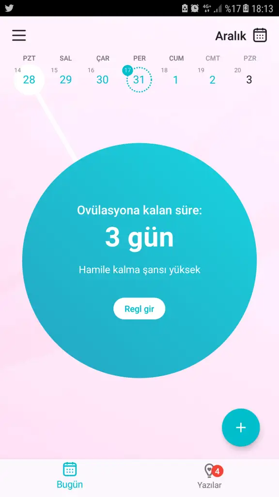takvimlere inanma onlar doğru çıkmaya biliyor elinde varsa yarın başla kaçıra bilirsin ben testleer sayesinde geç yumurtladığımı öğrendimBu ay yapacağım ama testleri ne zaman yapmalıyım. 15 aralık salı günü regl oldum. 18 aralık cuma bitti. 21 aralık hsg çekildi. 28 aralıkta ilişkiye başlayacağım ekte takvimi ekledim. Ona göre ovülasyon takibini ne zaman başlatmalıyım. 27 aralık ta başlıyor 2 ocakta bitiyor ovülasyon takvime göre.
