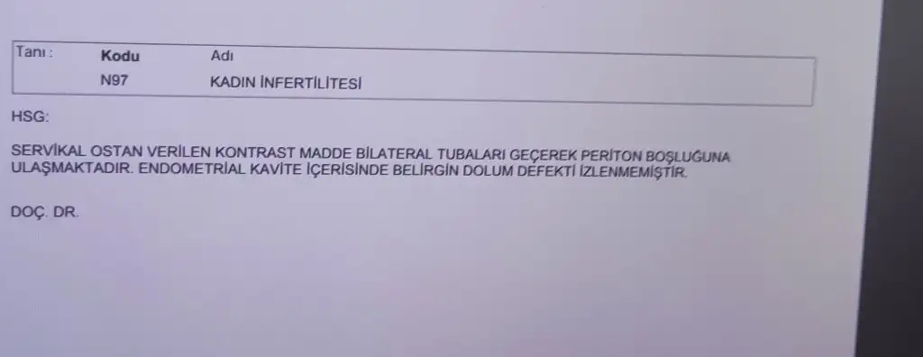 selam canım görseli yorumlayamam ama sonuctan anladıgım kadarıyla kanallarda bir sorun yok. stres yapma bende bayram oncesı cektırıp bayram sonrası yaklasık 10 gün sonra doktora gidebildim. kafandan at doktora gidene kadar içinide ferah tut hersey hayırlısıyla güzel olur inşAllah.