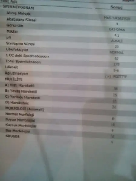 2 yıllık evliyim hiç korunma olmadı. Bi kaç gün içinde hormon testi yaptıracağım. Eşim bugün sperm testi yaptırdı. Az biraz anlayan var mı arkadaşlar yardımcı olabilir misiniz