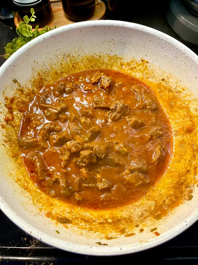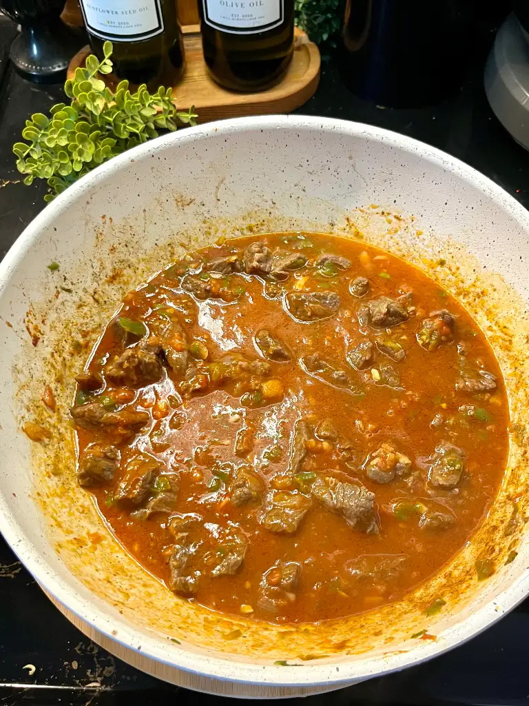 4. Kısık ateşte, etler yumuşayana kadar pişirin. (Gerekirse su ekleyebilirsiniz.)