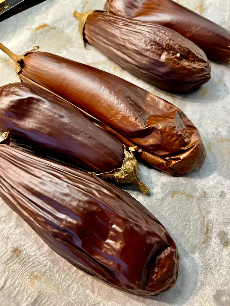 1. Patlıcanları közleyin (ocakta, fırında ya da airfryer’da). Kabuklarını soyup bıçakla ince ince kıyın.Eki Görüntüle 3638958