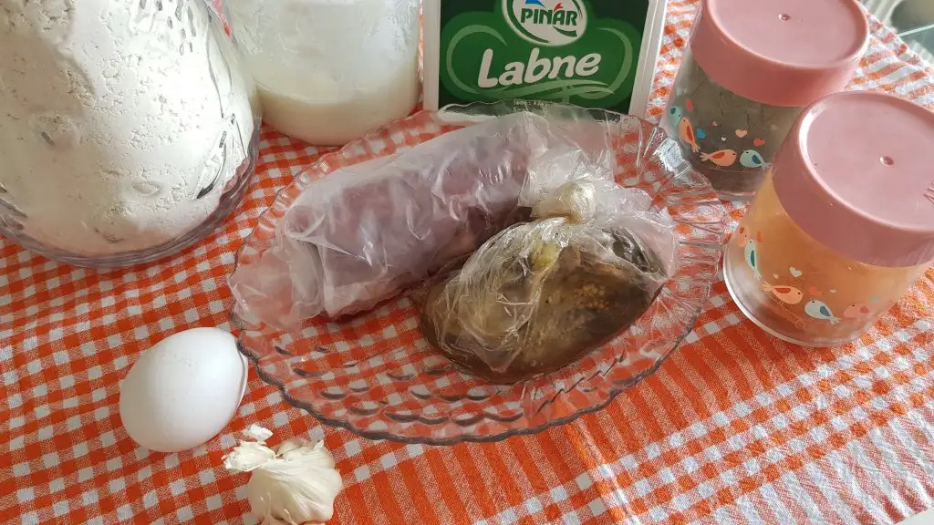 • Yoğurt, yumurta, labne ve unu ayrı bir kapta çırpıyoruz. 1 kepçe et suyundan ekliyoruz.