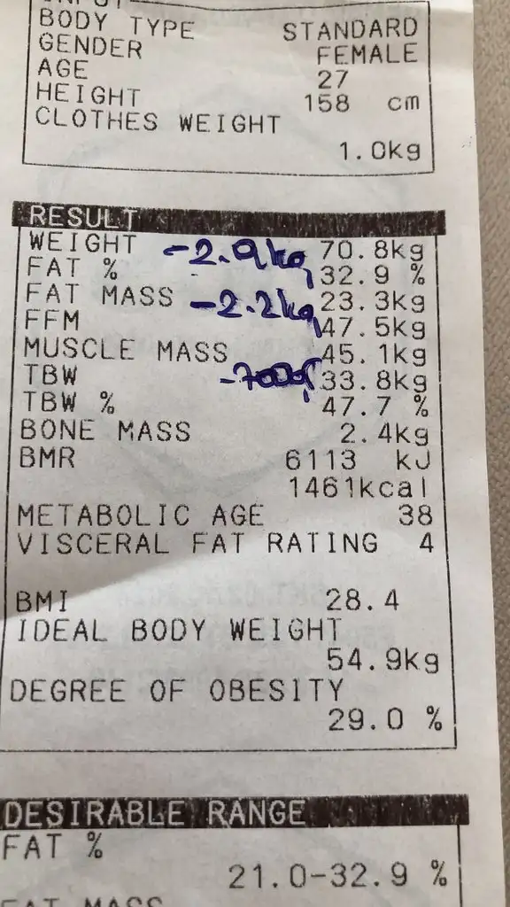 Digital baskülde tartıldım için o yüzden yağdan ne kadar gittiğinden haberim yok ama gözle görülür bir incelme varGayet güzel 4 gün için acaba yağdan mı veriliyor