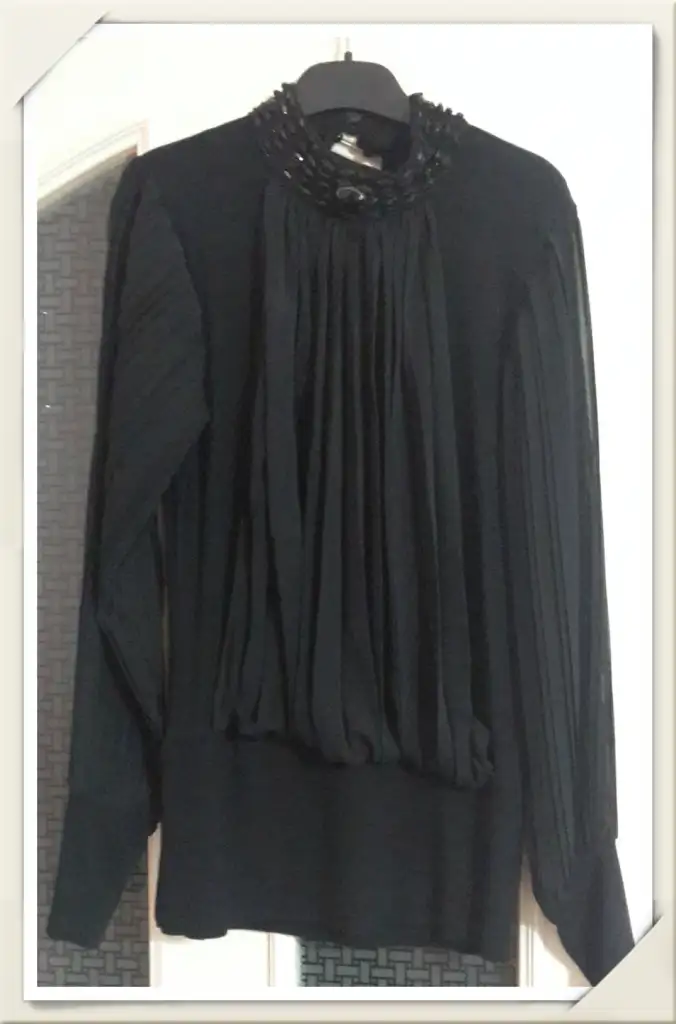 Sanırım sona tek eklediğimi soruyorsun. Is busem trikonun standart beden. Kollar ve öndeki detay sifon, yakası taşlı. Detaylı foto atabilirim isterseniz.siyah bluz kaç beden cnm