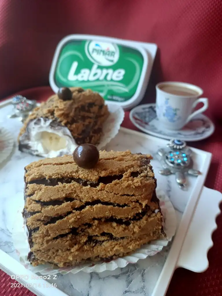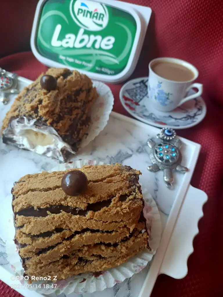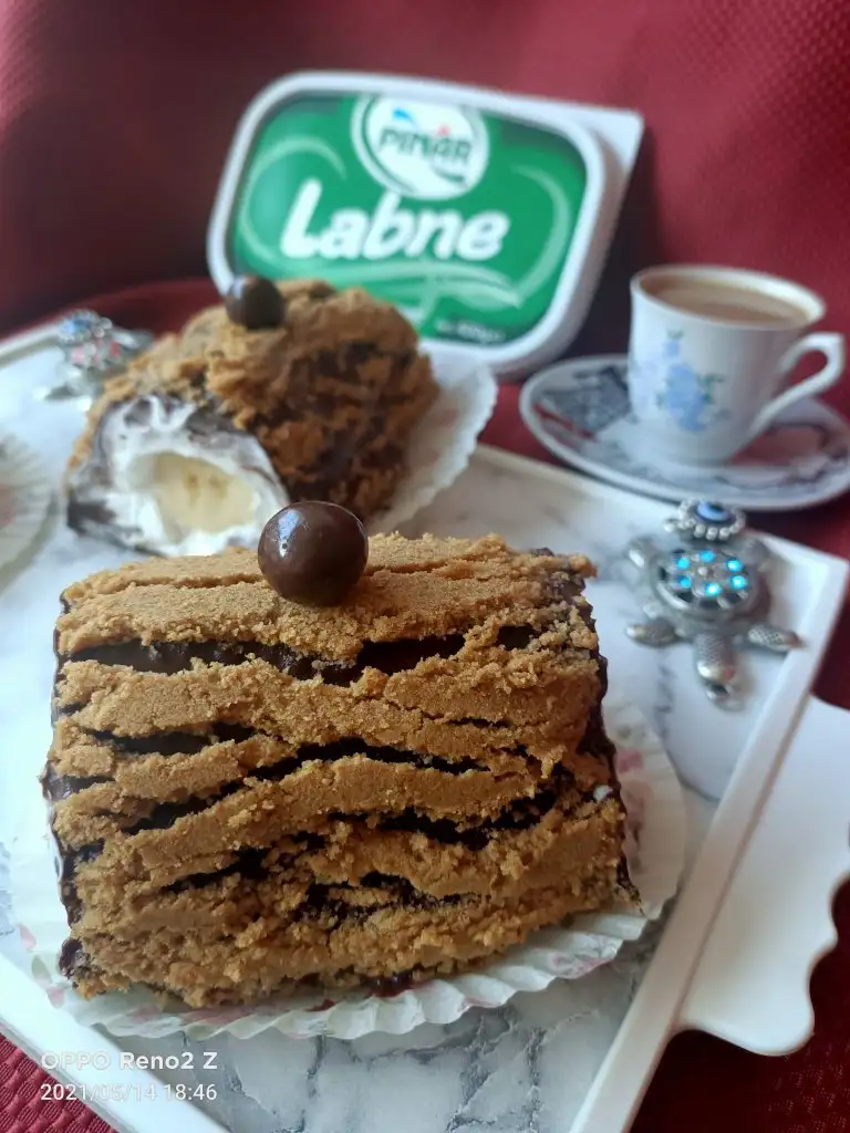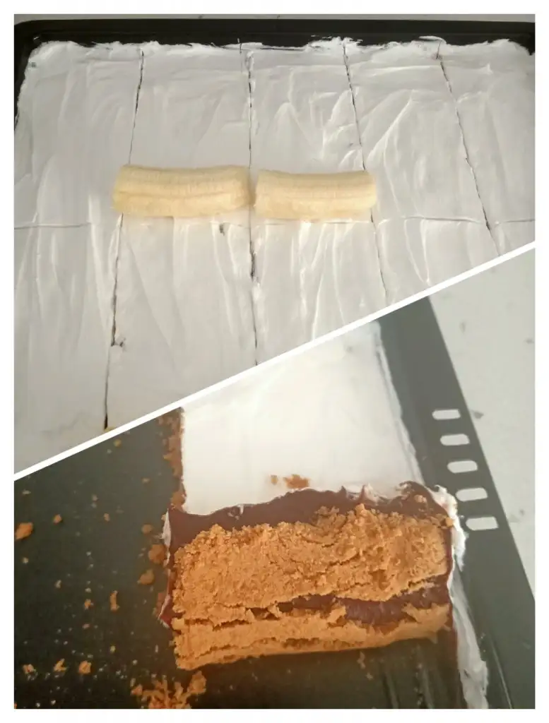 Öncelikle bisküvileri rondodan geçirip tepsiye bir bardakla bastırarak yayıyoruz. Süt, şeker ve unu karıştırıp ocağa alıyoruz. Koyulaşana kadar karıştırarak pişiriyoruz. Ocağın altını kapattıktan sonra damla çikolata, tereyağı ve vanilini ekleyip karıştırıyoruz. Beş dakika kadar sıcağının geçmesini bekleyip tepsiye eşit şekilde yayıyoruz. Bu şekilde soğuyana kadar bekletiyoruz. Bu arada krem şantimizi pınar labneyi de ekleyip çırpıyoruz. Soğuyan muhallebinin üzerine yayıyoruz ve mümkünse 1 gece dolapta bu şekilde bekletiyoruz. Bekleyen tatlımızı kesiyoruz ve arasına muz koyup sarıyoruz. Hemen servis edip bu güzel lezzeti tadıyoruz. Afiyet olsun.
