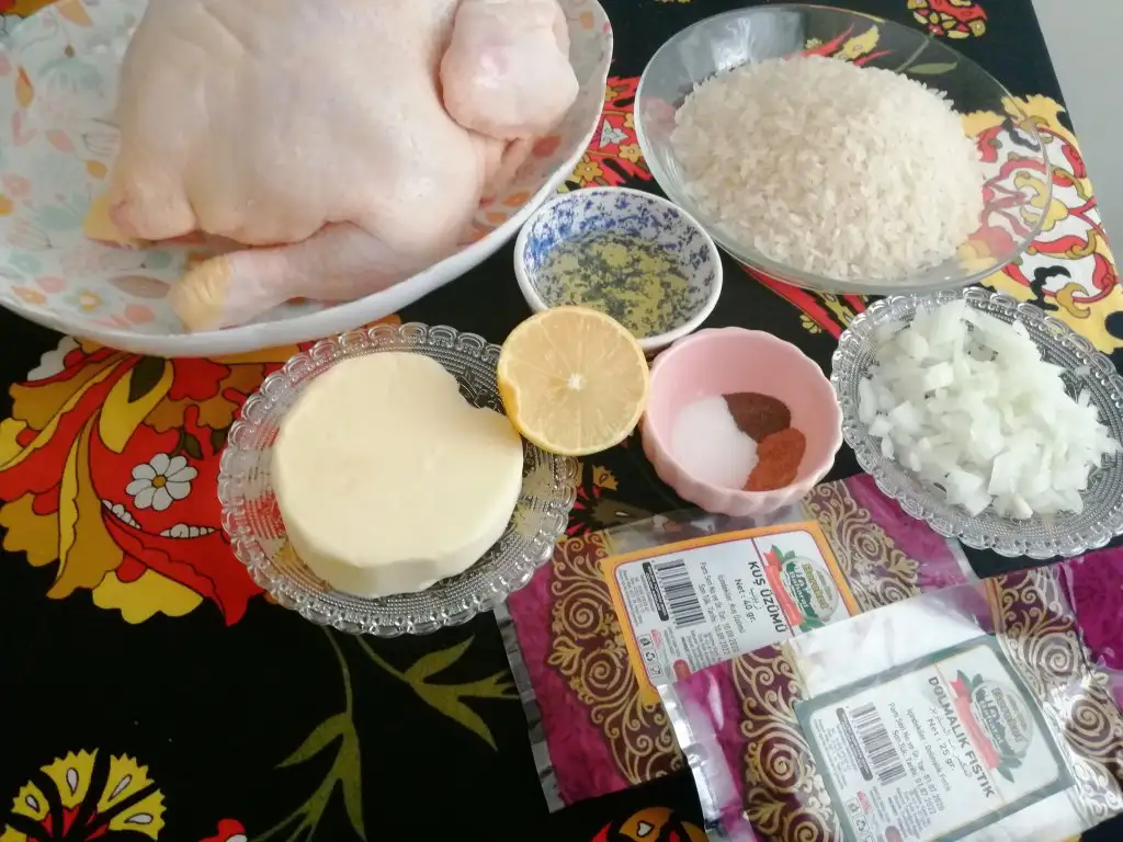 Pilavımızdan tavugun içine çok sıkışık olmayacak şekilde dolduralım. Kalan pilava 1 bardak daha su ekleyip pişirmeye bırakalım.
