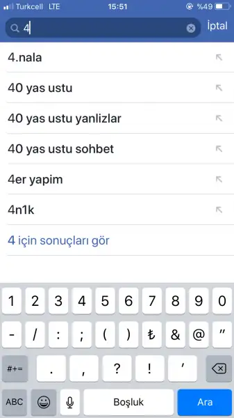 Tamamdir çok teşekkür ederim :)Yo yo sakın panik yapmayın fb Google inst. gibi sayfaların çok farklı algoritmaları vardır. aynen 4 e basınca bende de 40 yaş üstü diye bir çok seçenek çıkıyor. Bu kullanıcıların arama oranları ve konumlarına göre. bu sayfalarda sürekli birilerini aratıp bakarsanız size önce onları önerir eğer arama çubuğunu fazla kullanmazsanız diğer kullanıcıların çoğunlukla aradıklarını gösterir. Sakin olun içiniz rahat olsun mesleğim gereği gayet iyi biliyorum bu olayları