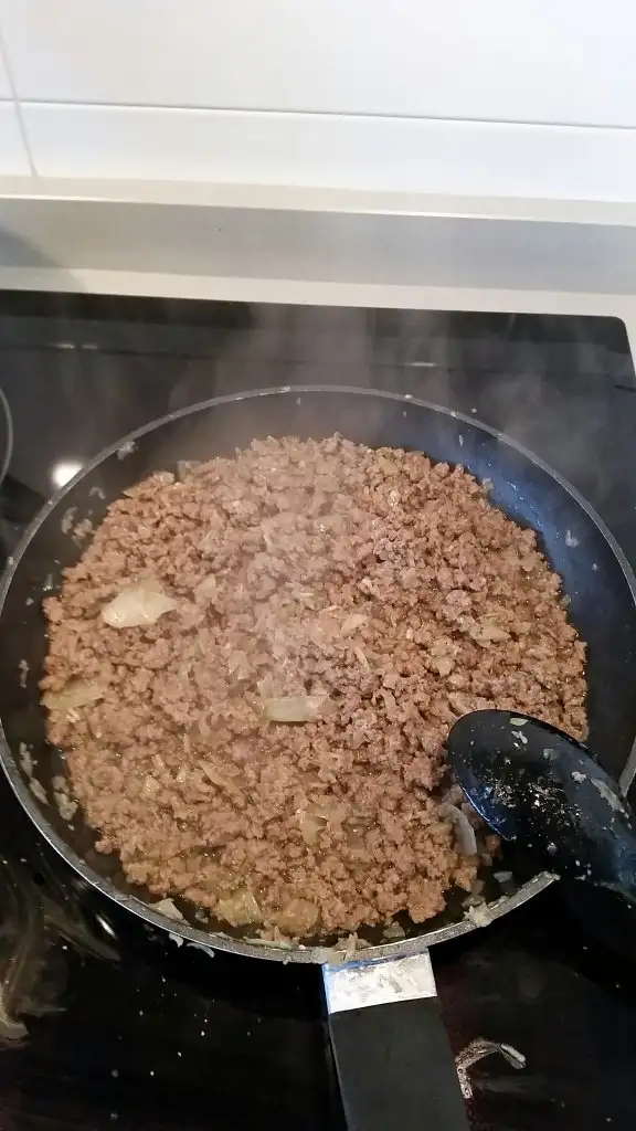 Soganlar kavrulduktan sonra kiymayi ilave ediyoruz