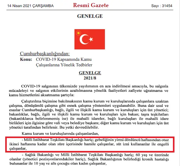 Resmi gazetede yayınlanan asıl genelge bu malesef. Sizin gönderdiğiniz maddede de idari izin kapsamındaki hamilelerden bahsediyor. Keşke bizleri de kapsasaydı ama genelge bu şekilde malesefIcisleri bakanliginin yazisinda hamile ibaresinde hafta bilgisi yok.