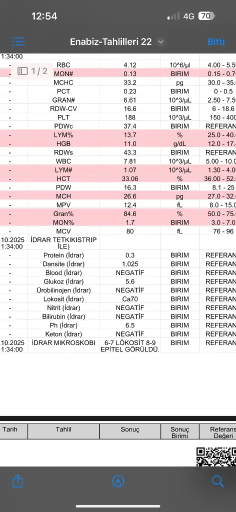 Kizlar bakar mısınız ca70 vs ne demek. Hafif idrar yolu enfeksiyonu dedi doktor. 4 hafta öncede değerlerim böyleydi. Toz içecek verdi içtim 1 ay geçti değişmemiş. Anlayan önerisi olan varsa her türlü yoruma açığım kızlar🫶🏻