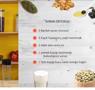 kuru nane yada taze nane yapragıda olur bu detoks 3-5 gun yapılıyor sadece akşamları ögün yerine geçiyor .bilginize resimdeki malzemeleri bızlatın için arzuya göre 1 adet salatalıl ekleyin ⬇