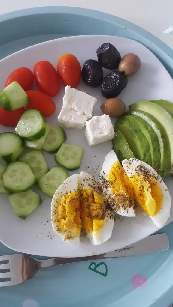 Bugün sabah kaşarlı omlet, yarım simit, salatalık