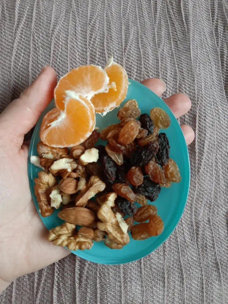17.00 bu hafta hiç meyve ve kuruyemis yemediğim için çay tabağına yemek istediğim biseyler koydum
