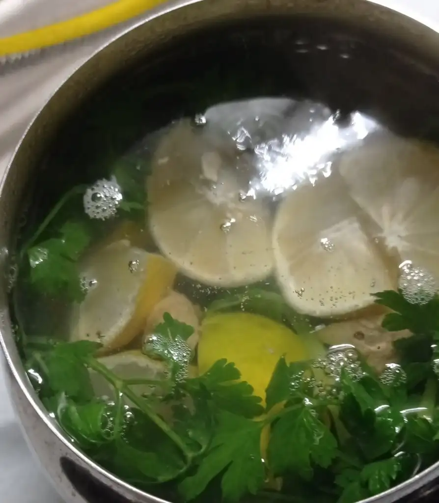 1.5 litre suya maydonoz, limon ve zencefili kat