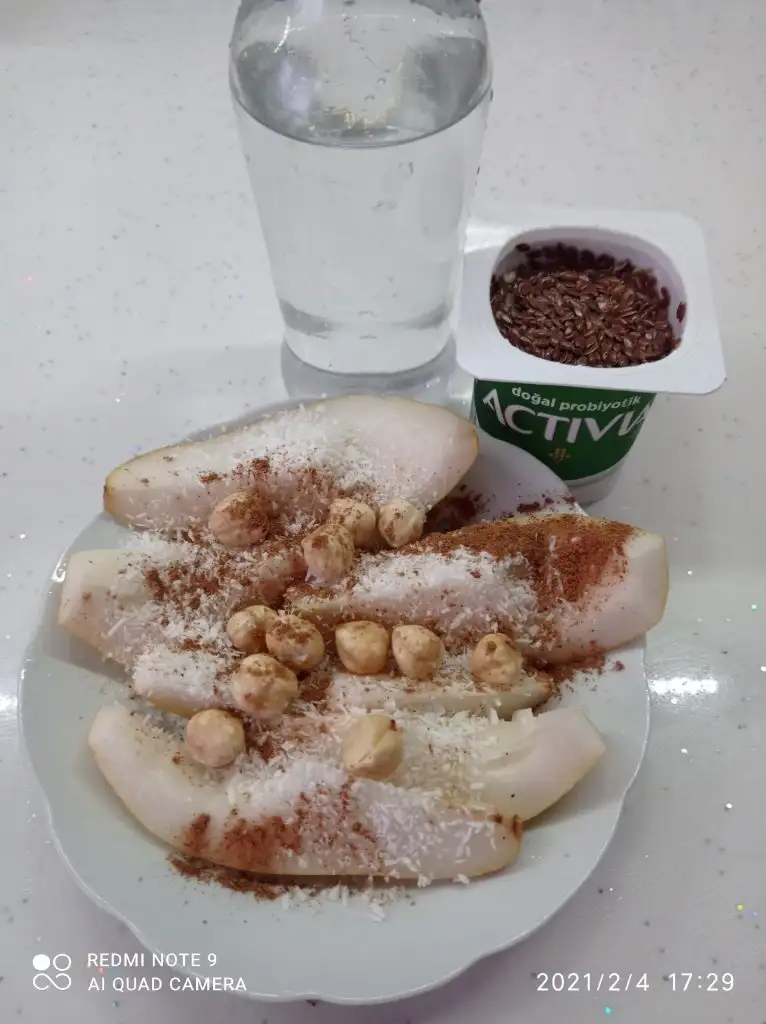 Yoğurt la karıştırdım yumuşadı armut yerken sonra güzelce çiğnendimsenin bu aksam tabakları beni benden alıyorr. muhteşem...ben bi alışamadım gelenekselin dışına çıkamıyorum. ama bu sabah baharat koydum tabagıma senden görduklerımle. bir de bir yerde keten tohumu kırılmadan yenilince emilmiyor diye okudum, o yuzden ben blendar dan geciriyorum sımdı. aklında olsun