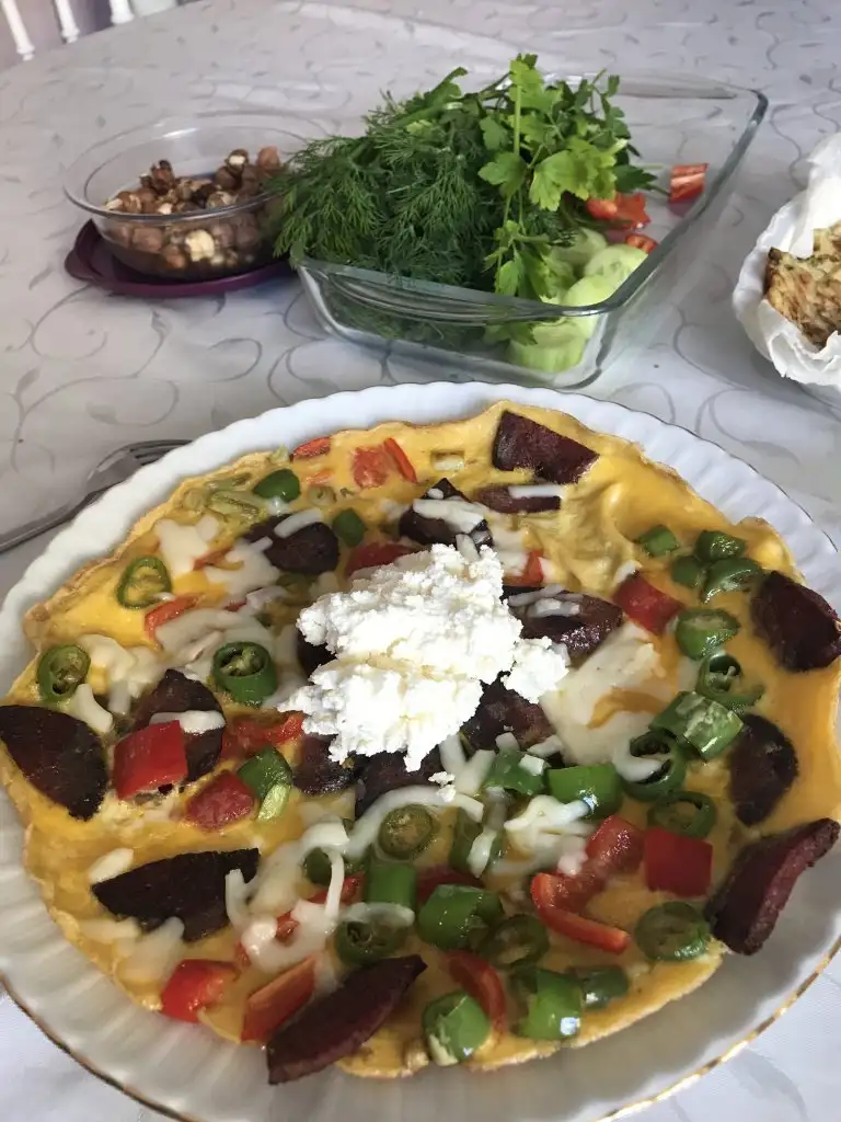 2 yumurta ve 50 gr kadar sucukla omlet,