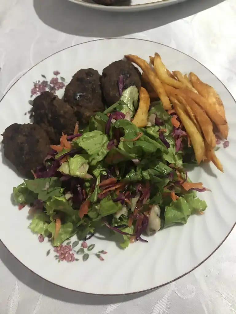 bugün ki menüm sabah 10 kahvaltı bir dilim ekmek bir parça peynir 1 haşlama yumurta 7 zeytin yarim domates yarim salatalik 1 çatal acuka 🤭 öğlen 12 buçuk ta bol yeşillikli salata avuç içi kadar haşlama tavuk göğsünden salata yaptım yanında 2 bardak ayran 16 .00 da 4 yemek kaşığı yoğurt 3 yemek kaşığı sebzeli bulgur pilavı salata bir kepçe corba 3 litre su içtim kaçamak olarak bir adet çikolatalı gofret yedm dayanmdm 🤭🤭