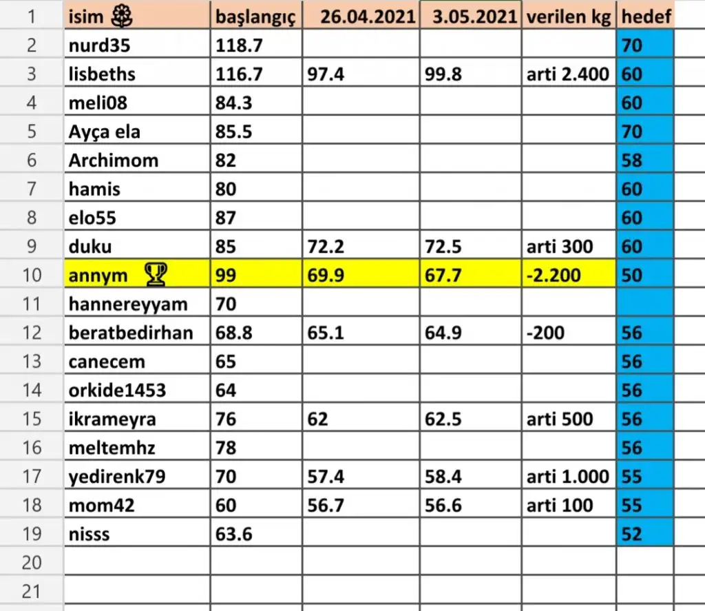 Haftaya yaparım canım. Bu hafta net kilom yok ondan paylaşmadım.Baskül paylaşımı yaparsanız sevinirimhaftaya
