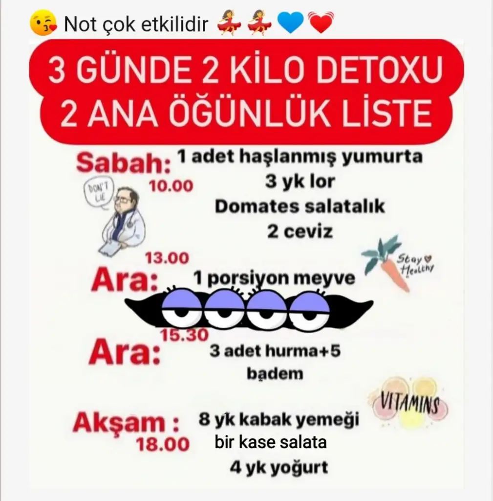 Beyninde bitirmelisin bir döner Sana galipmi geliyor yani ne yediysen onlarami karşı koyamiyorsunn onun tadını biliyorum yemesemde olur demeyi bilmeliyiz ben detoks paylaşıyorum bir dene tatlım istersen aksam 8 kaşık zeytinyağlı sebze yemeği olabilir illa hergun kabak şart degil bunu bir hafta uygula cnm hatta hep uygula zaten 8-10 kaşık kuralı koysan zaten Başarırsin 🙈