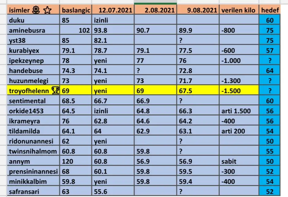 Benimki yanlış olmuş -1.6 kgtroyofhelenn tebrikler canım bol eksiler olsun bu haftanın şampiyonu sensin