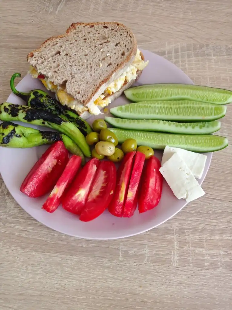 Sabah 10.00 1 yumurta Bir kac dilimcik kızarmis patates peynir domates tahin pekmez