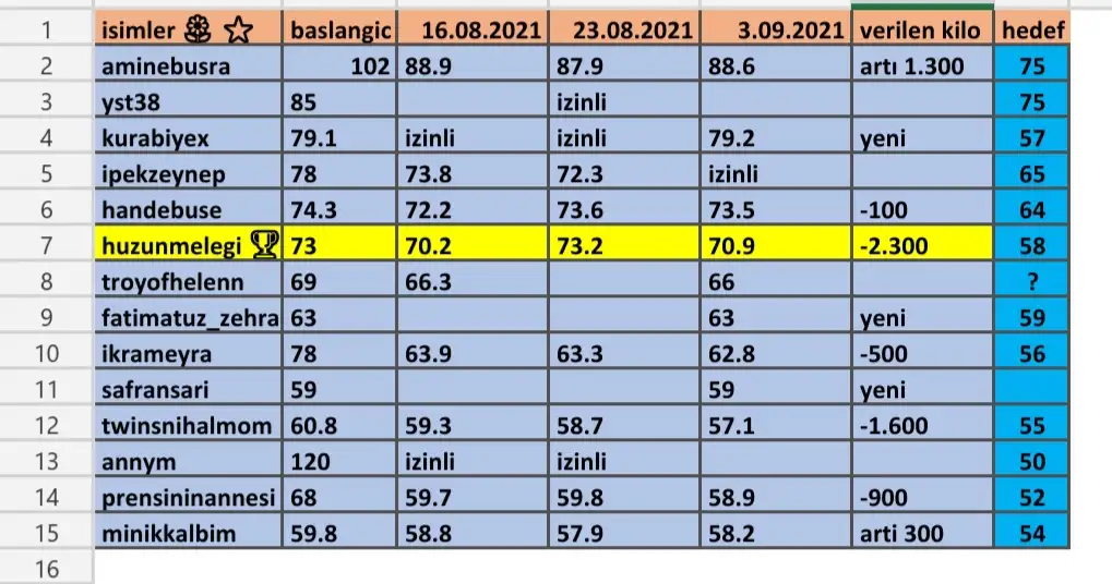 Çok teşekürlerK Klassklasik tebriklerbu haftanın şampiyonu süpersin yeni haftaya bol eksiler olsun kilo veren herkesi tebrik ederim