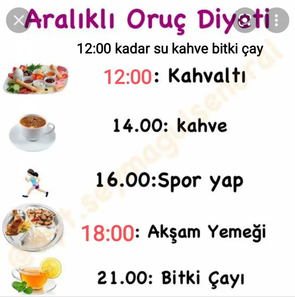 Eğer öğlene kalmadan acıkıyorsanız sabah 9-10 gibi ilk öğününüzü yapıp, yeme penceresini 17.00 gibi de kapabilirsiniz.