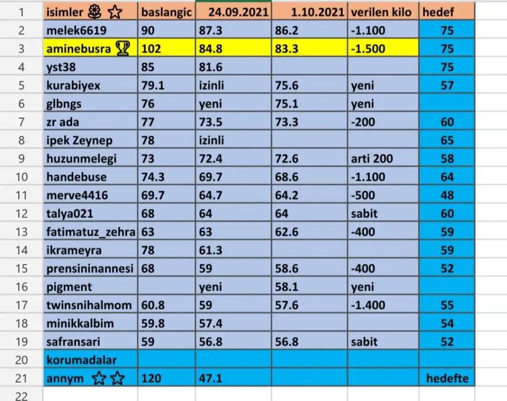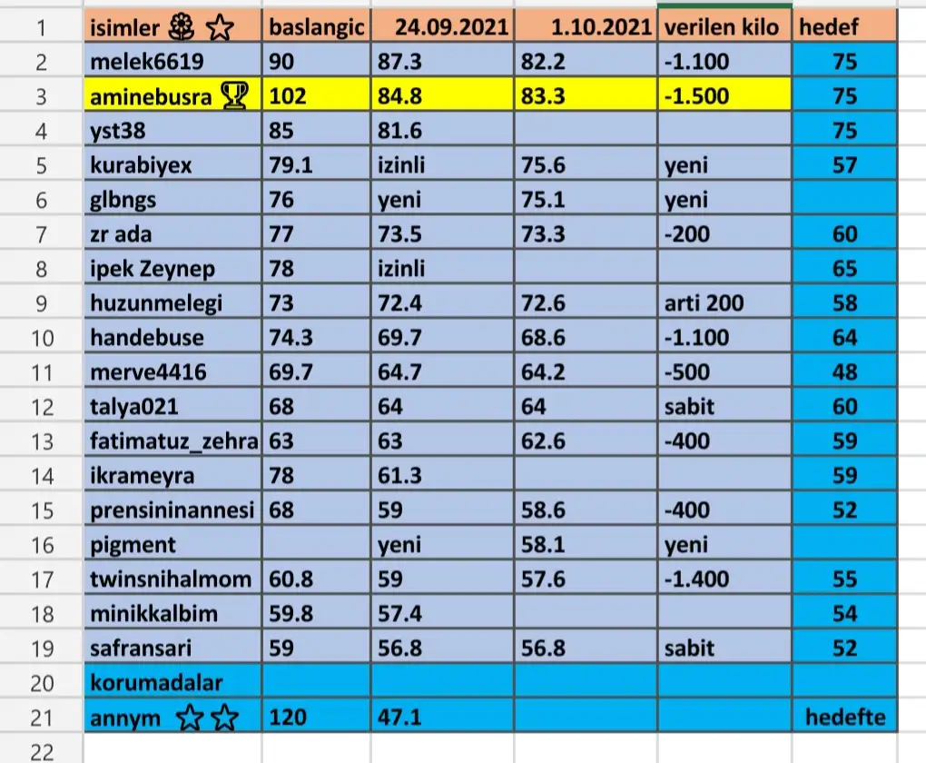 Canım benimki yanlış yazilmis 86.2 olacaktı böylede iyi amaHaftanın şampiyonuaminebusra 1.500 ile şampiyon kilo veren herkesi tebrik ederim yeni haftaya bol eksiler olsun Mthn83 ipek zeynep M minikkalbim ve ben yarın baskül paylaşacağız resmi ekran resmi yapın yada ilk sayfadan bakalım Eki Görüntüle 2925678