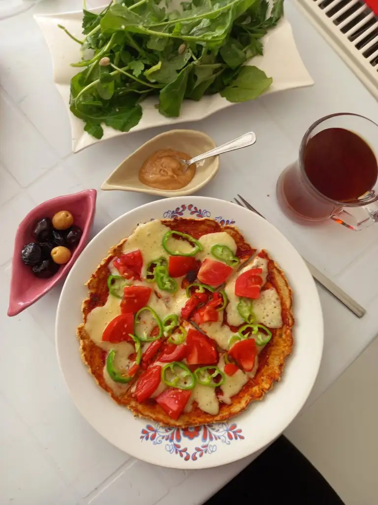 Nefis gözüküyor afiyet olsun ceviz yiyebilirdin aslında kuruyemiş yemediğini söylemiştin ya. Kahvaltılarına ilave et canim akşam bende yemiyorum.Yulafli pizzam bugün tek ogunle günü kapaticam gibi herkese mutlu huzurlu pazarlar.....
