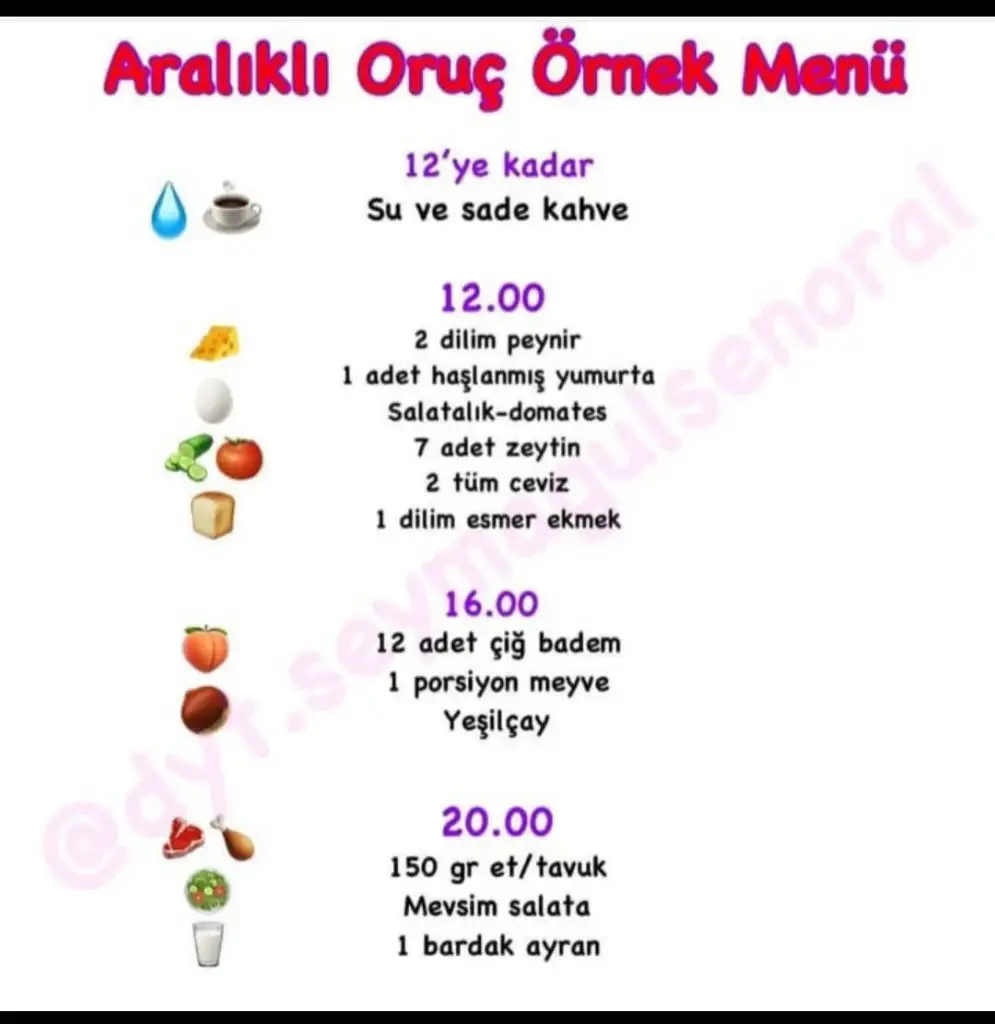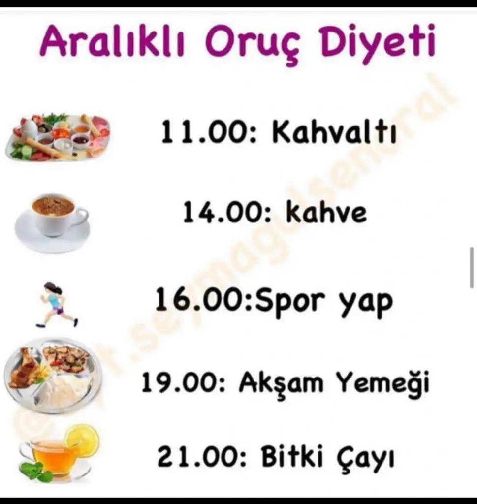 Eğer öğlene kalmadan acıkıyorsanız sabah 9-10 gibi ilk öğününüzü yapıp, yeme penceresini 17.00 gibi de kapabilirsiniz.