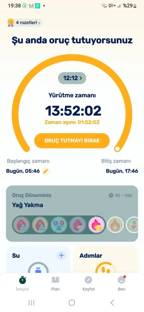 Sahur ve iftar ogunlerim iftar öncesi 17 dk hit kardiyo +40 45 dk yürüyüş yaptım saat 10 gibide 32 dk kardiyo 7 dk basen egzersizleri yapacagim